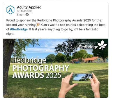 Proud to sponsor the Redbridge Photography Awards 2025 for the second year running 🎉 Can’t wait to see entries celebrating the best of #Redbridge. If last year’s anything to go by, it’ll be a fantastic night.